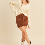 Pair it with denim and boots for a casual daytime look, tuck it into a suede mini skirt for a chic date night outfit, or layer it over faux leather pants for a modern, cozy-chic vibe.