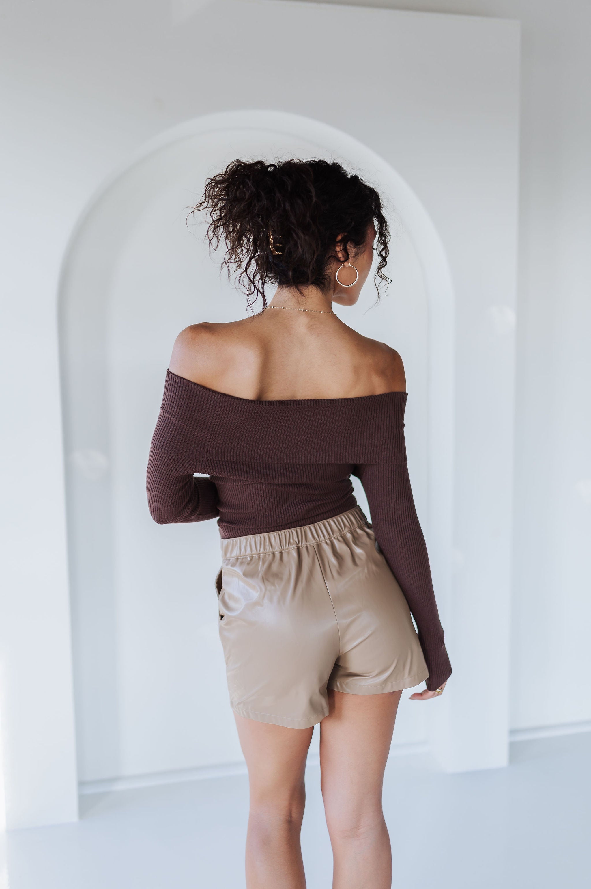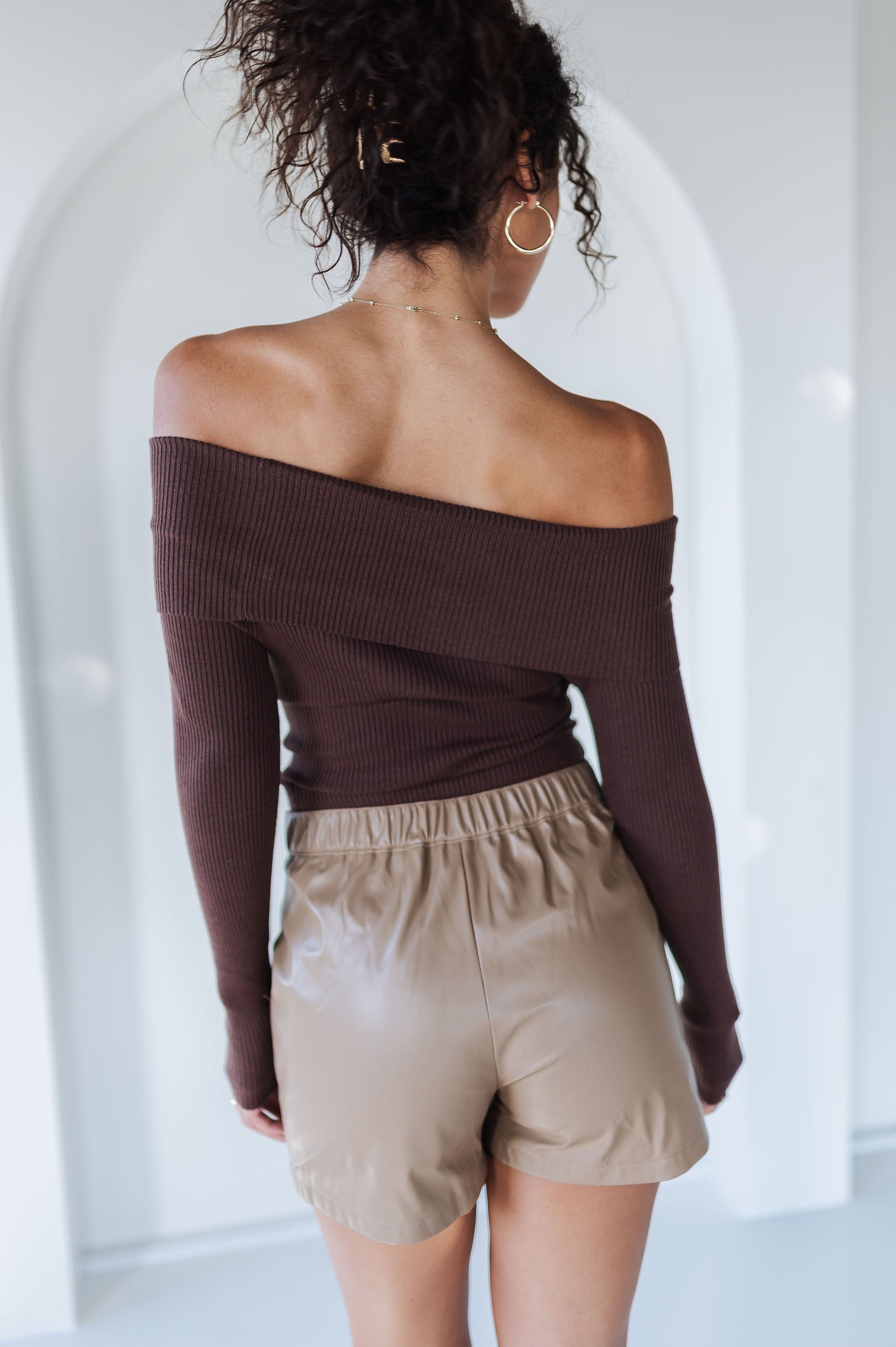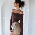 • Off-shoulder foldover neckline