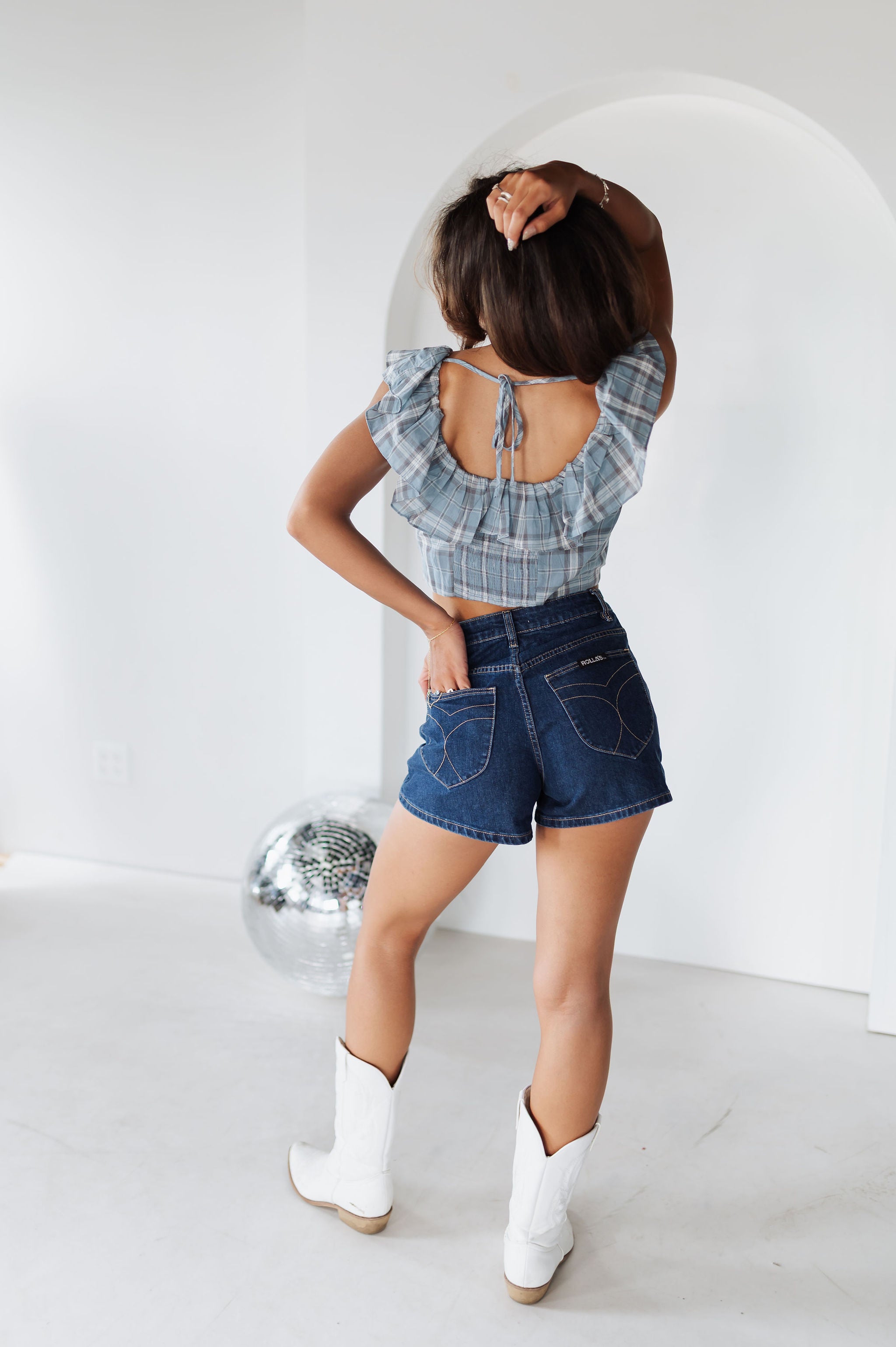 Pair it with high-rise white shorts and cowgirl boots for a playful western vibe, or throw it on with wide-leg jeans and a woven tote for an easygoing daytime outfit. It's the perfect little top for sunny days and spontaneous adventures.