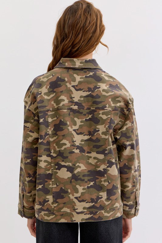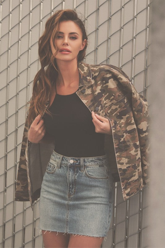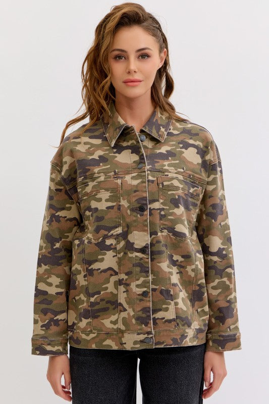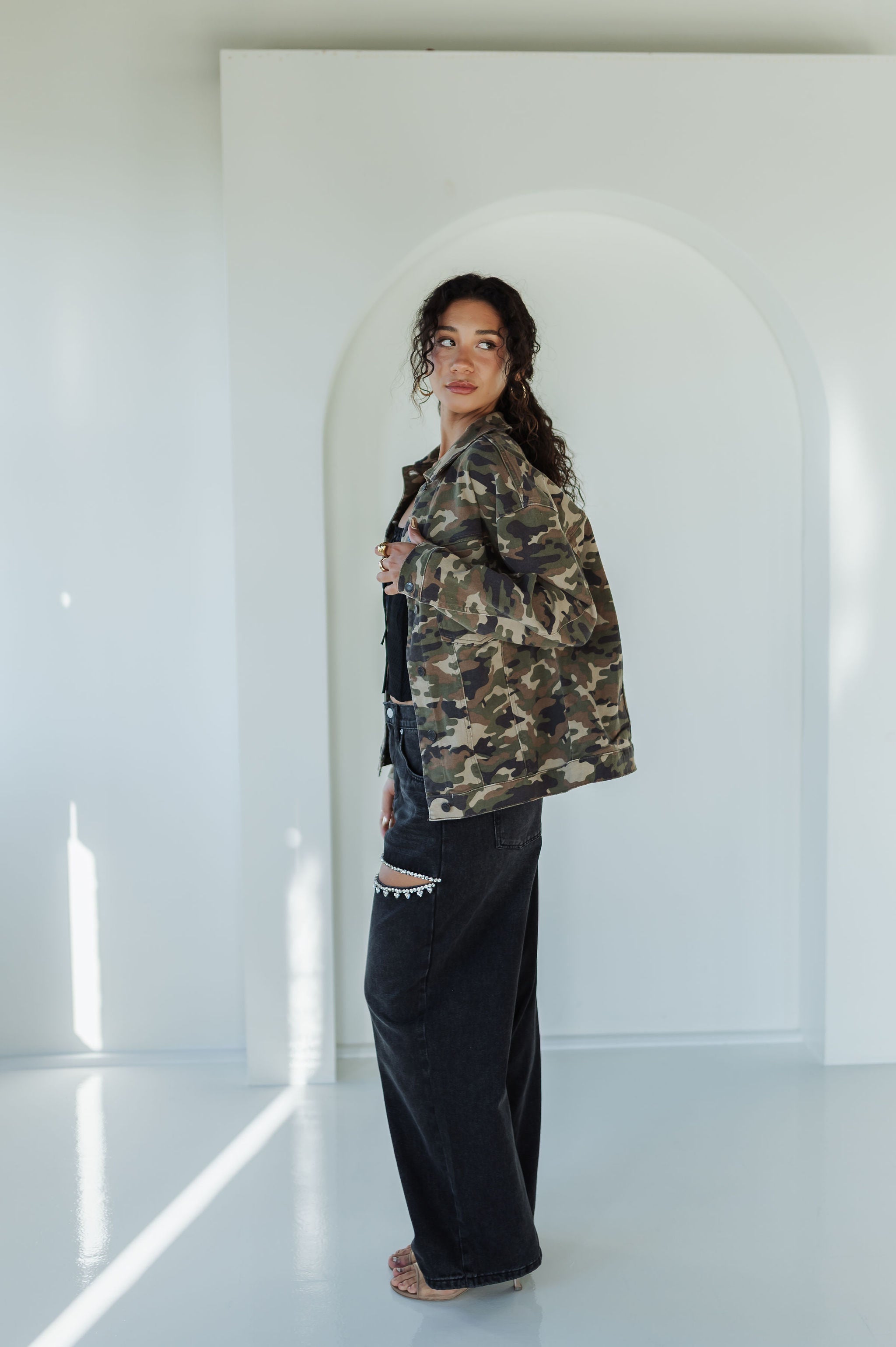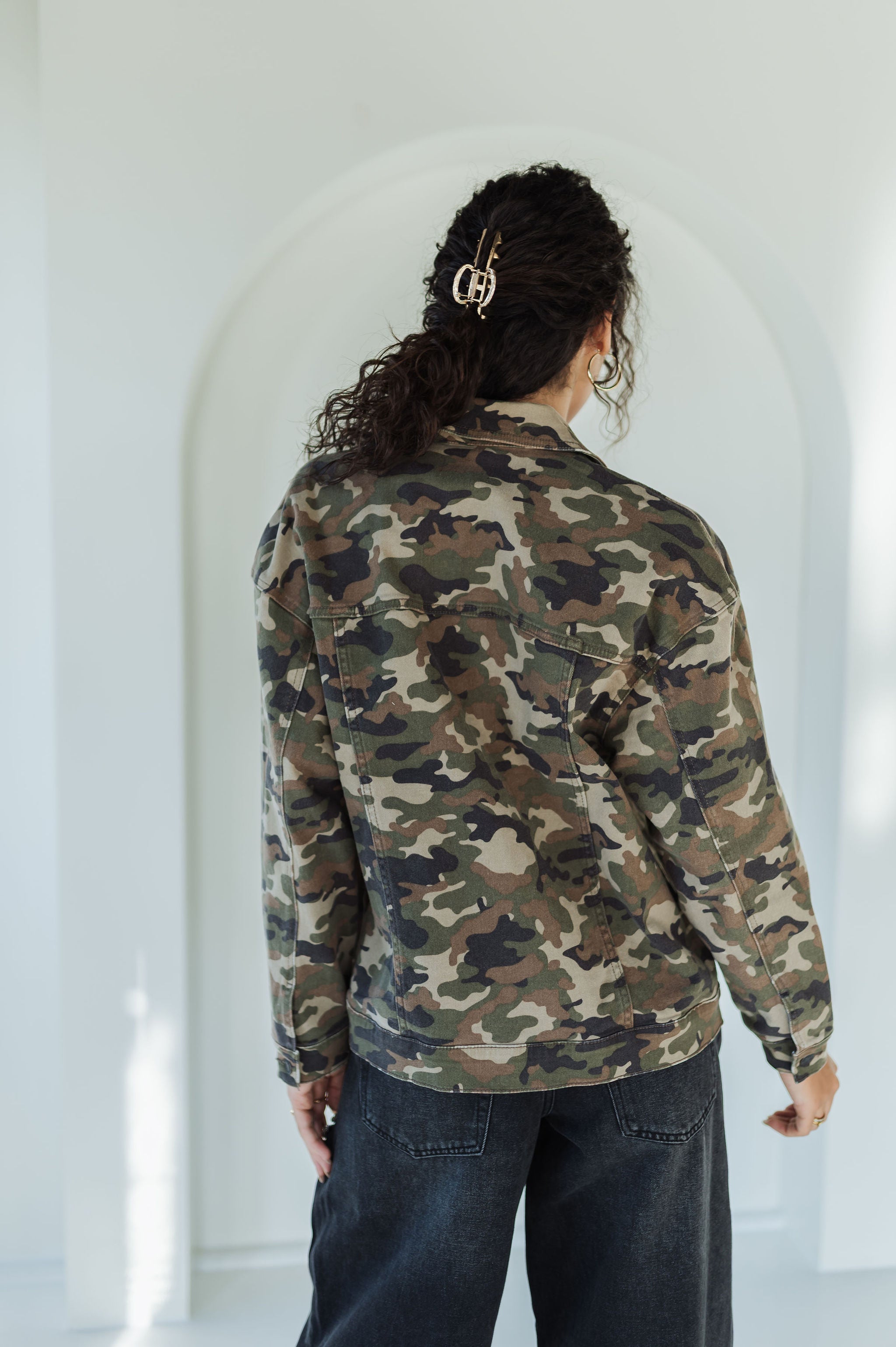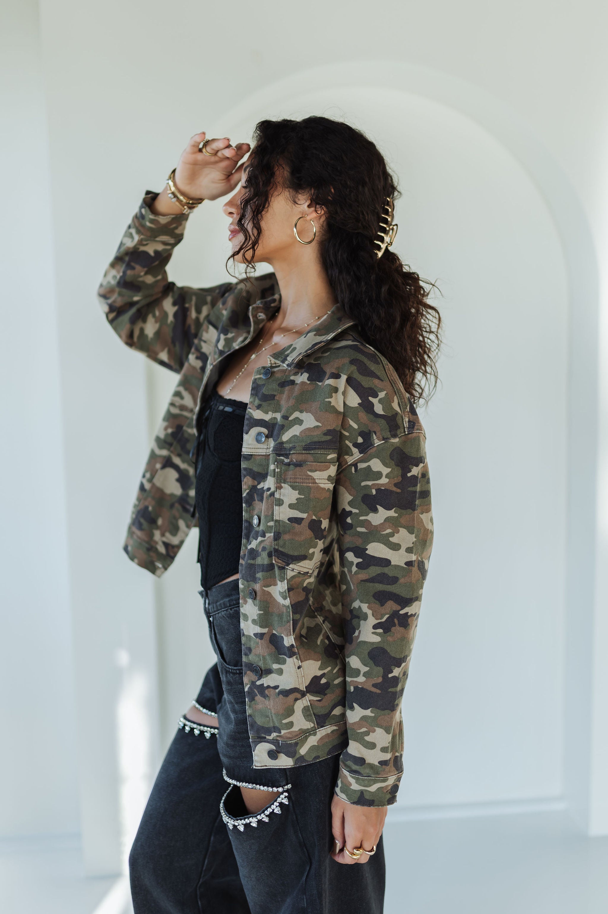 Your new go-to layering piece just dropped. The Street Scout Oversized Camo Jacket delivers that effortless, borrowed-from-the-boys vibe with its relaxed fit and washed camo finish. Designed to keep things casual yet cool, this jacket pairs perfectly with denim, dresses, or even joggers for an off-duty look. With its soft stretch fabric and slightly cropped back length, it’s as comfortable as it is versatile.