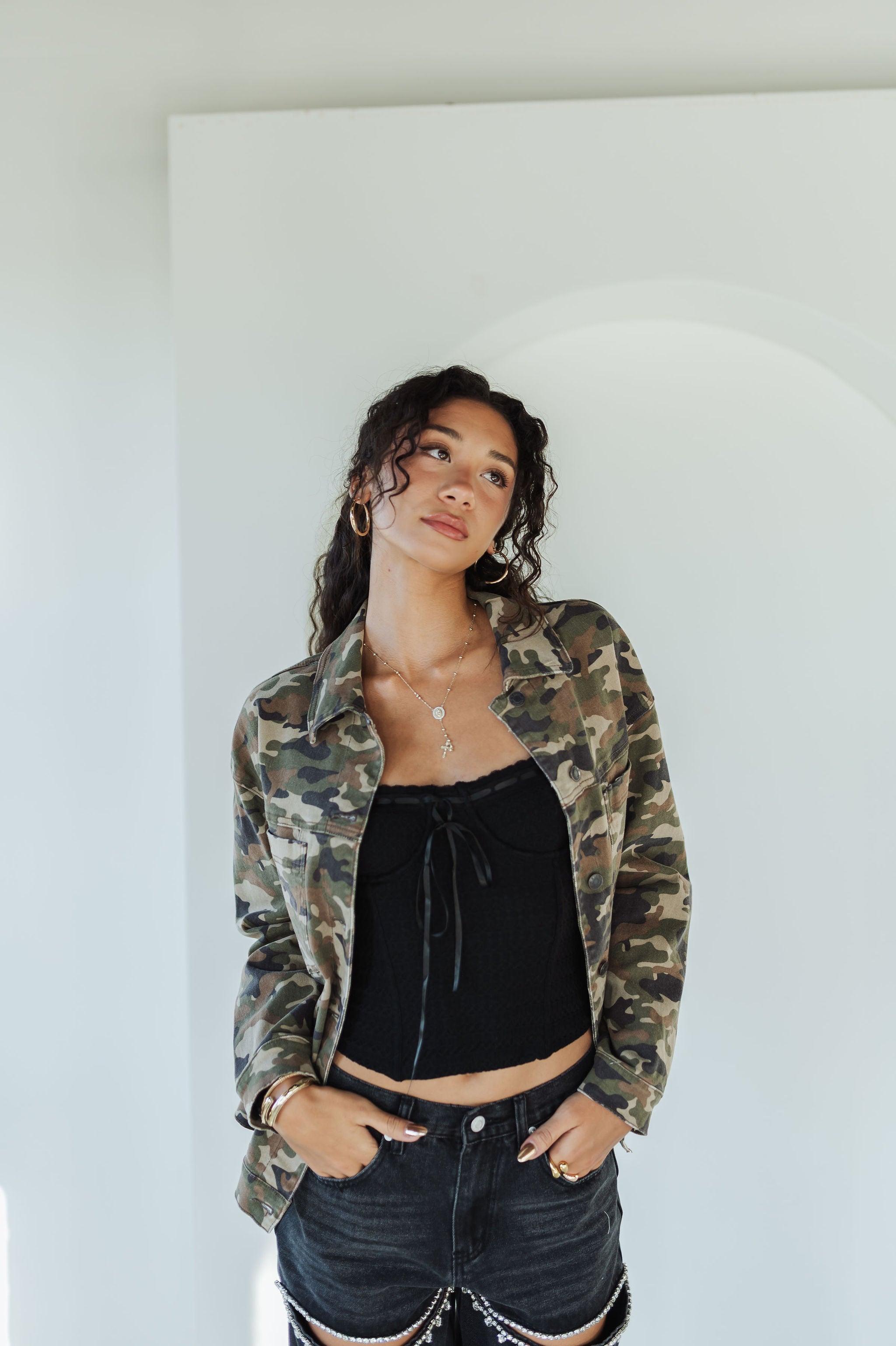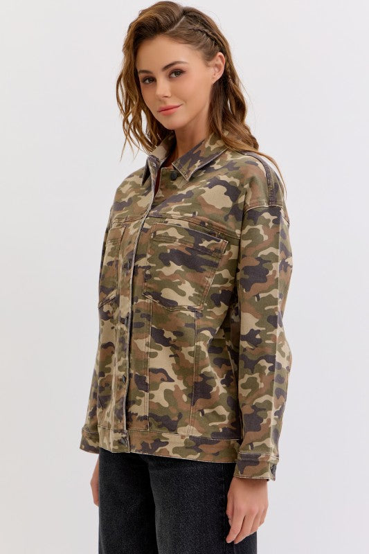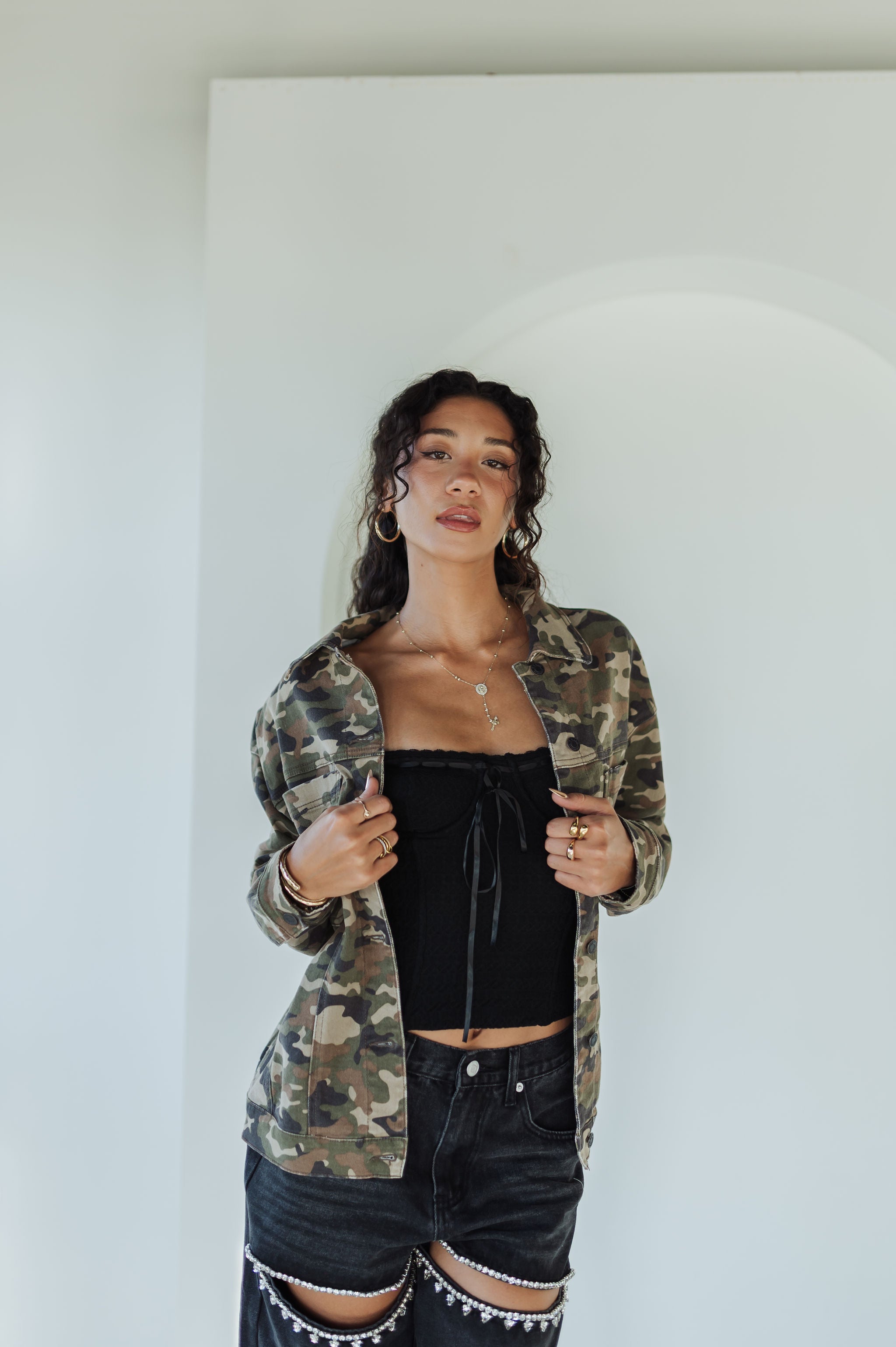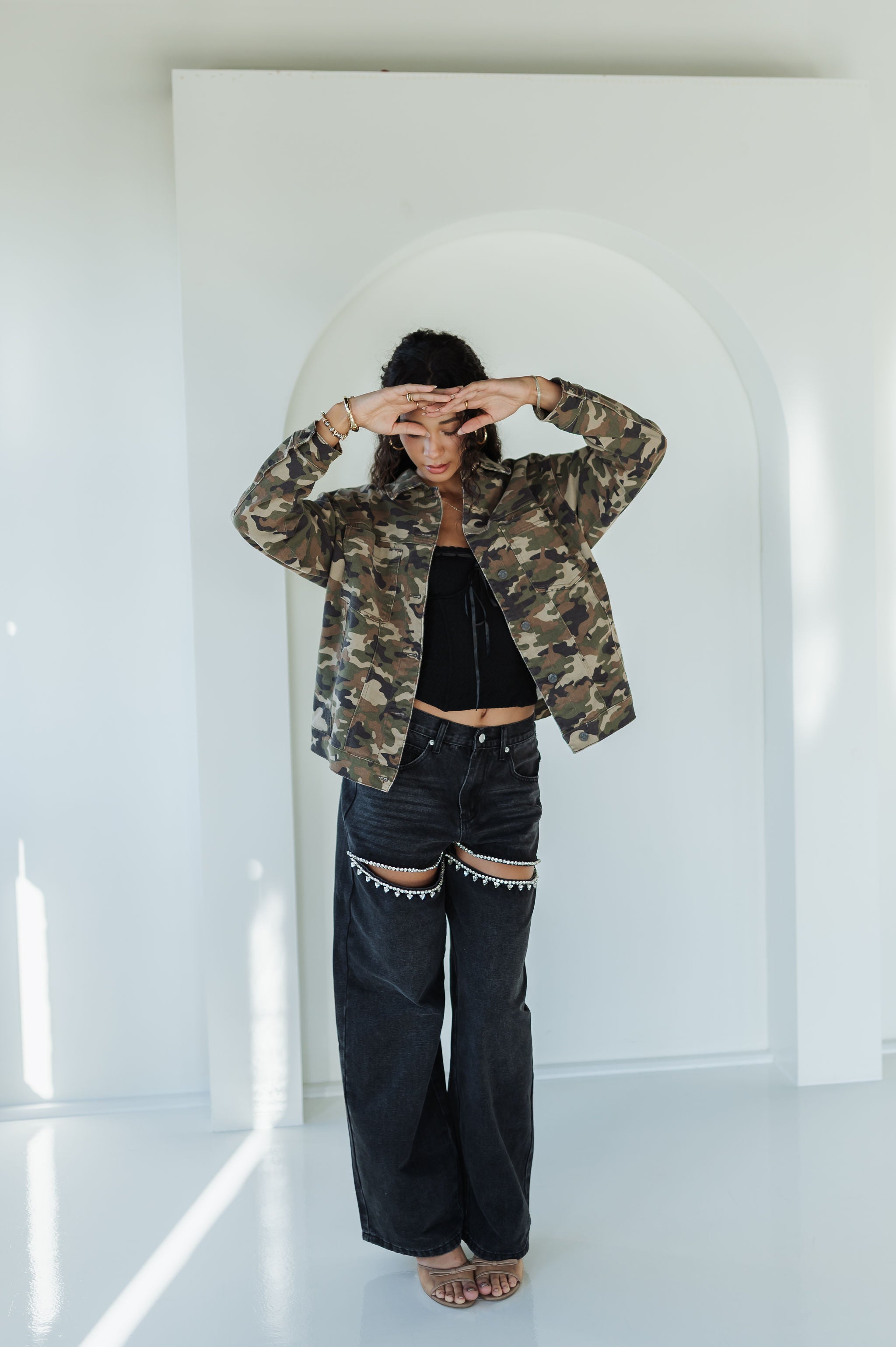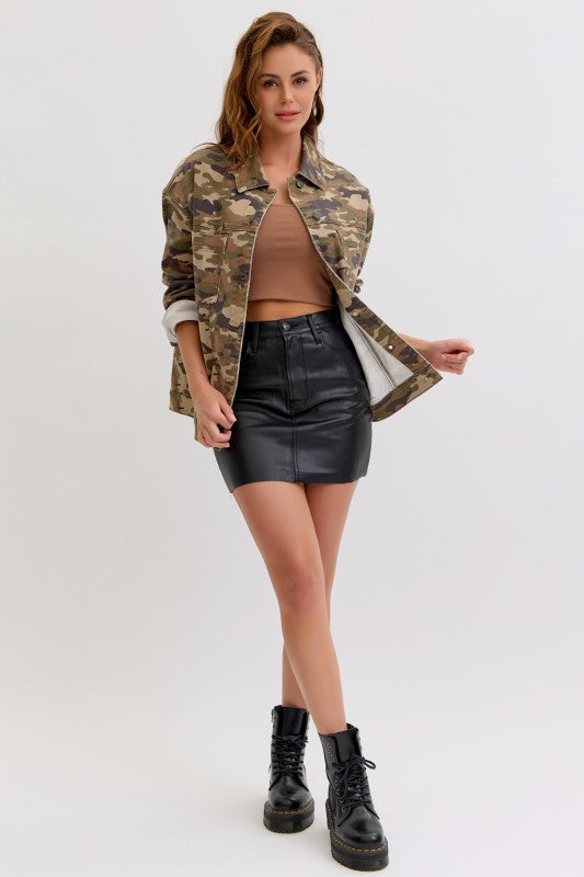 Your new go-to layering piece just dropped. The Street Scout Oversized Camo Jacket delivers that effortless, borrowed-from-the-boys vibe with its relaxed fit and washed camo finish. Designed to keep things casual yet cool, this jacket pairs perfectly with denim, dresses, or even joggers for an off-duty look. With its soft stretch fabric and slightly cropped back length, it’s as comfortable as it is versatile.