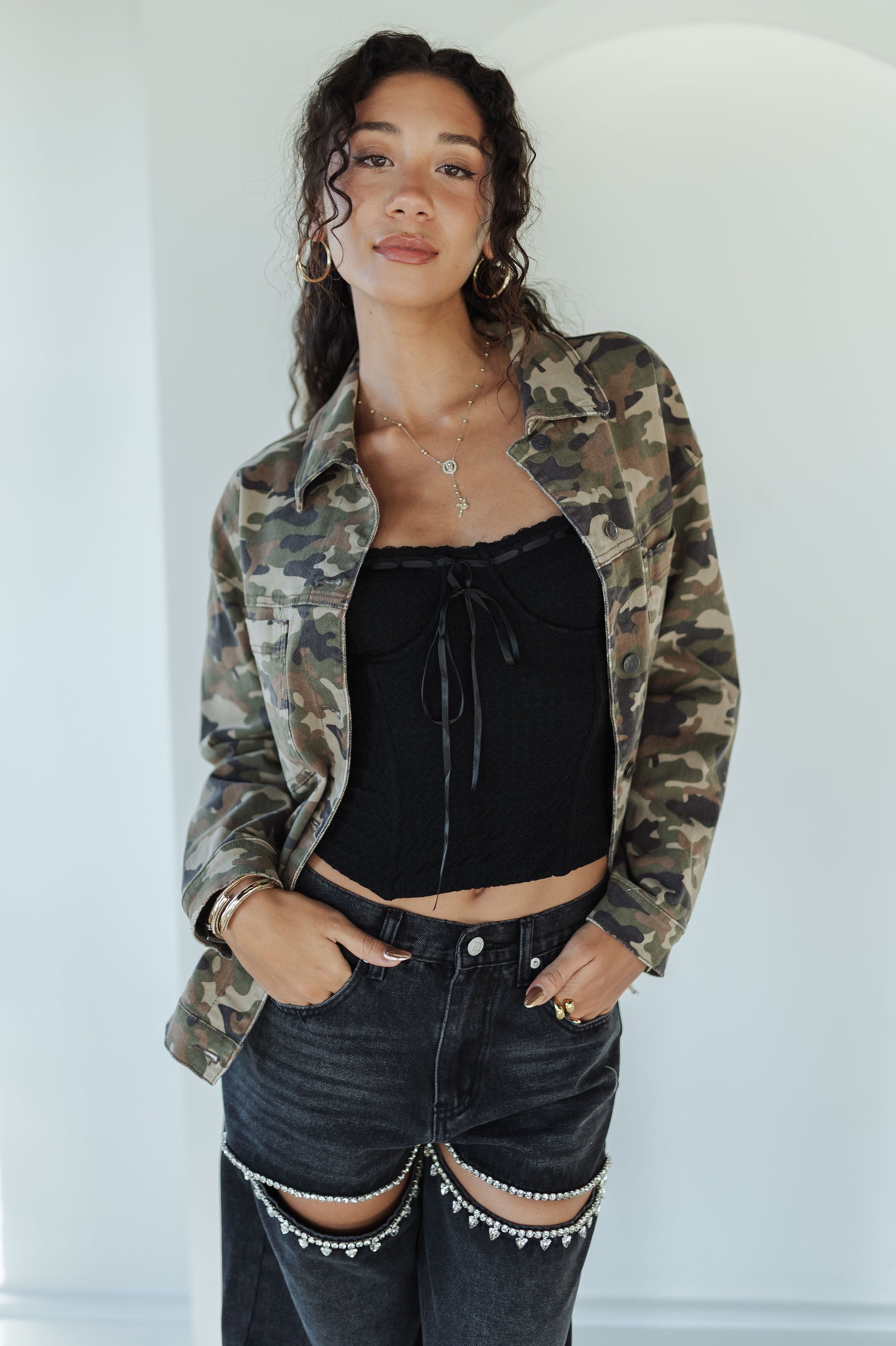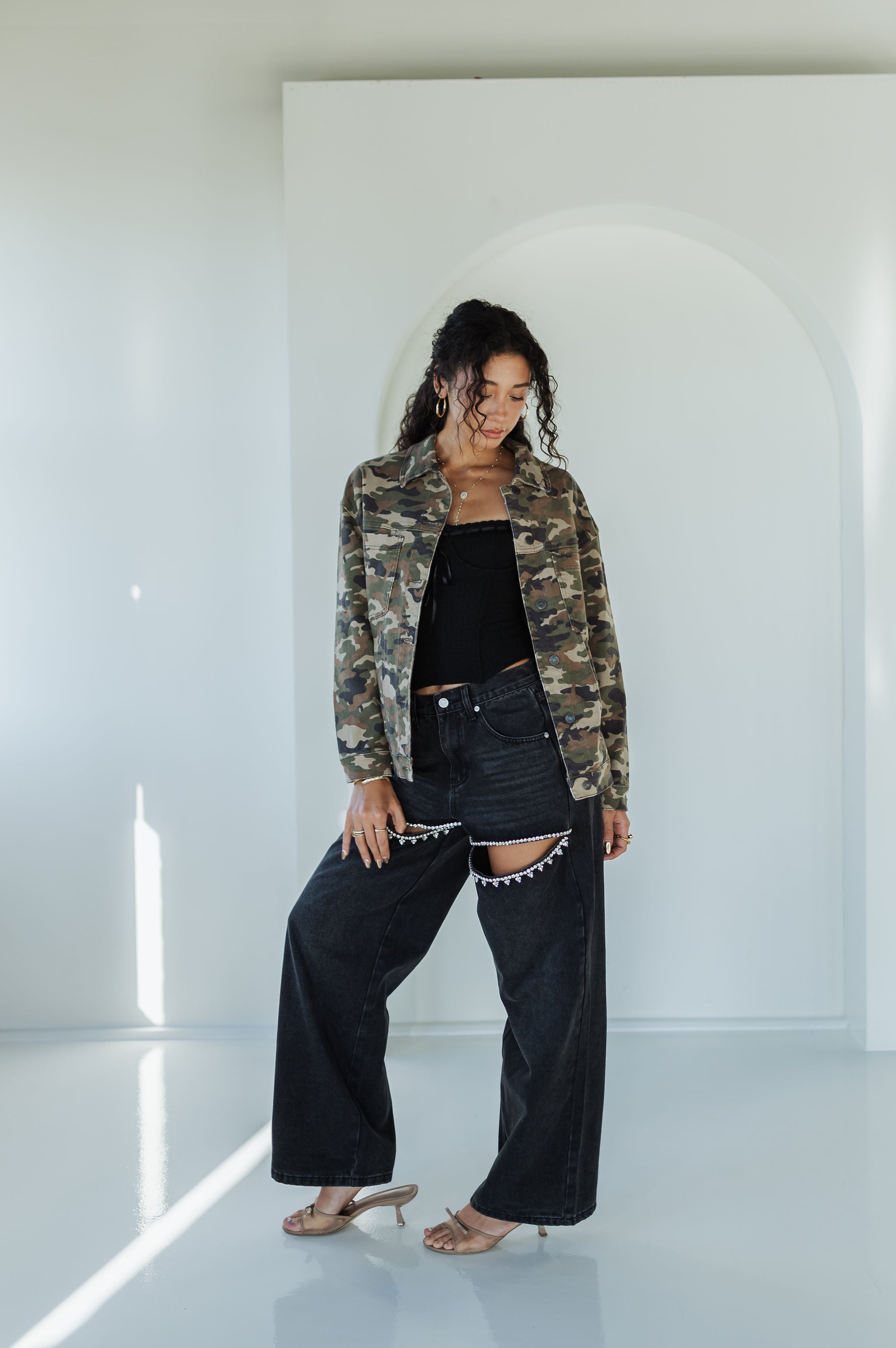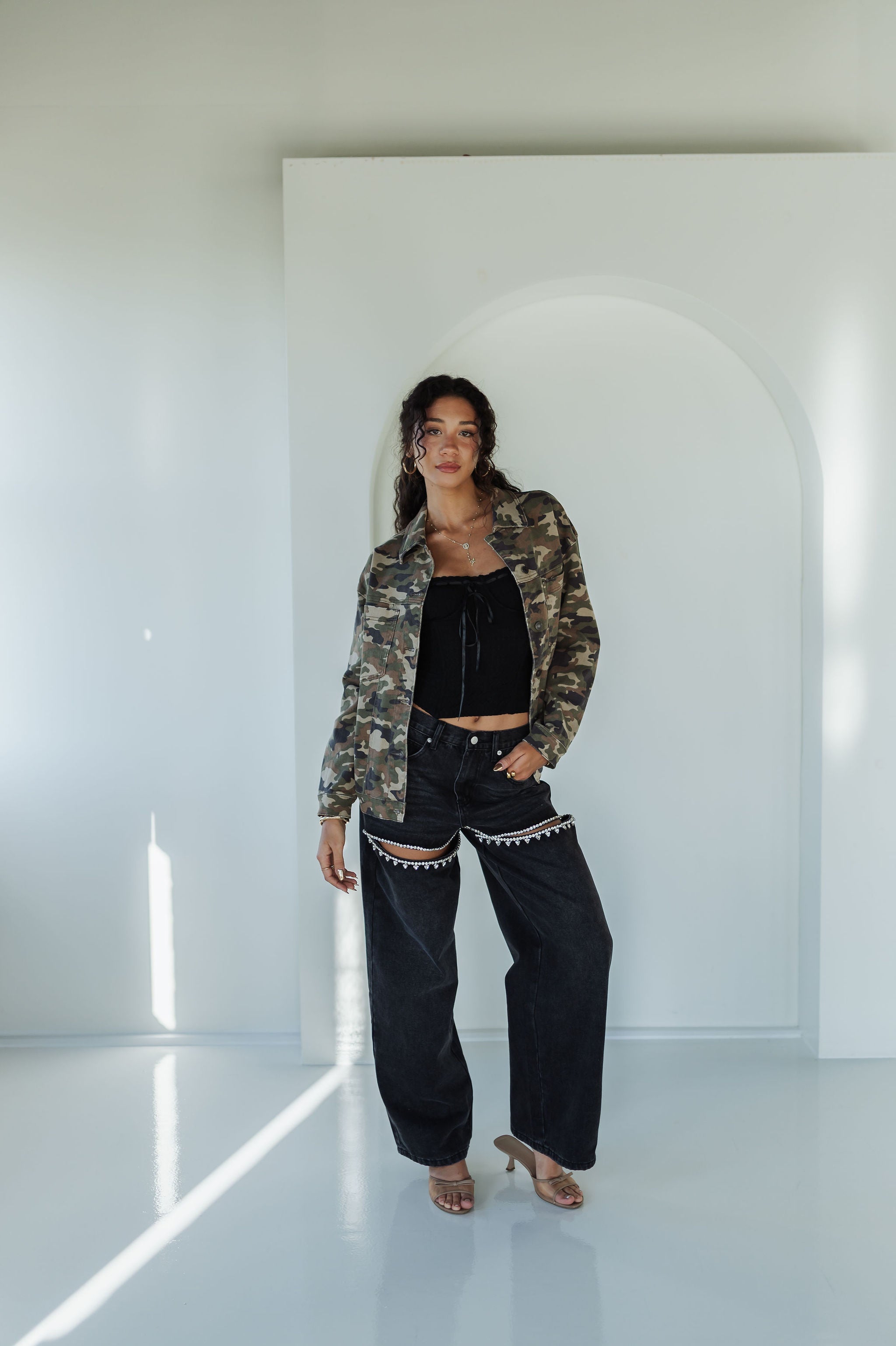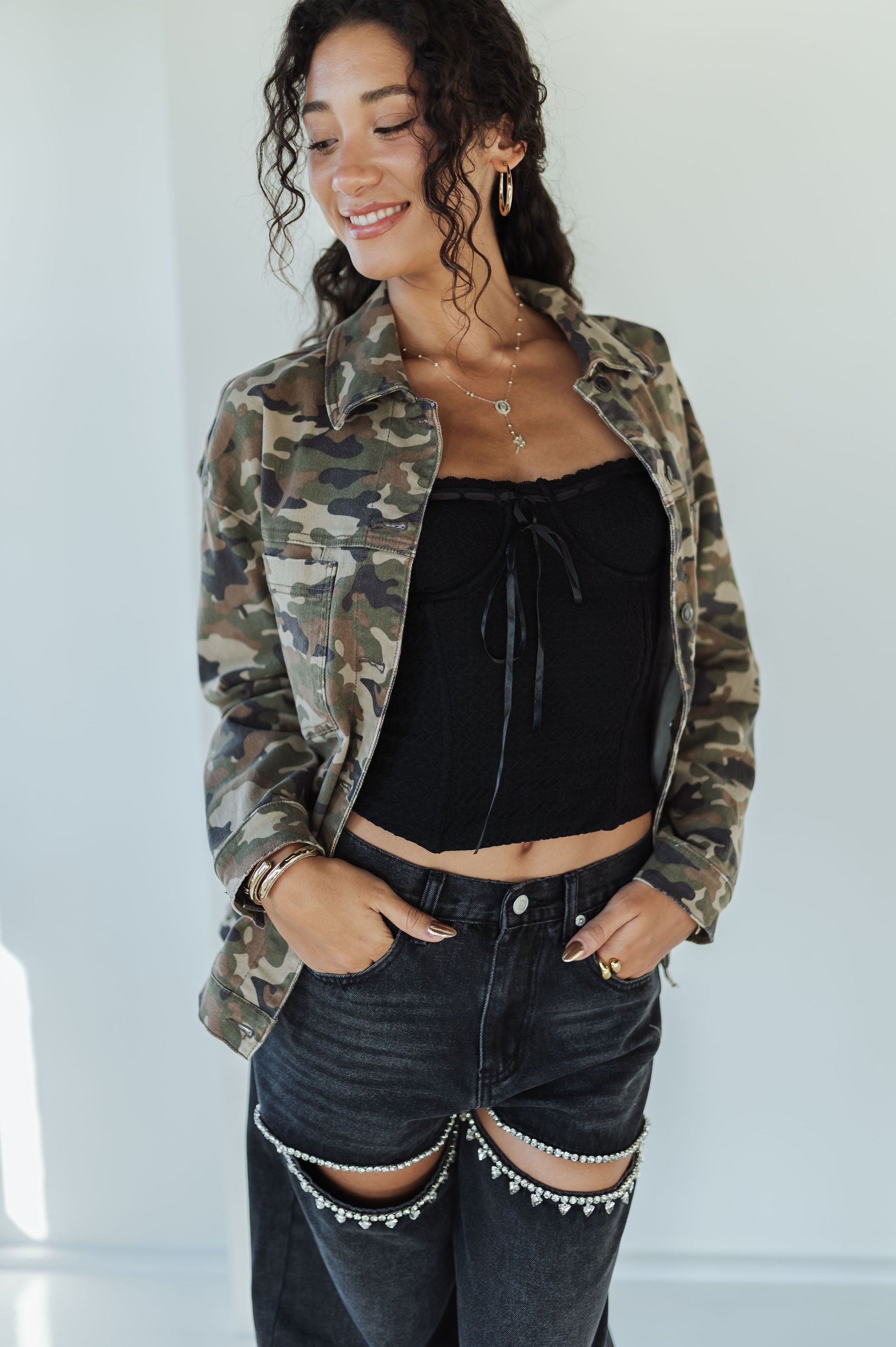 Your new go-to layering piece just dropped. The Street Scout Oversized Camo Jacket delivers that effortless, borrowed-from-the-boys vibe with its relaxed fit and washed camo finish. Designed to keep things casual yet cool, this jacket pairs perfectly with denim, dresses, or even joggers for an off-duty look. With its soft stretch fabric and slightly cropped back length, it’s as comfortable as it is versatile.