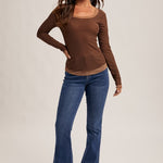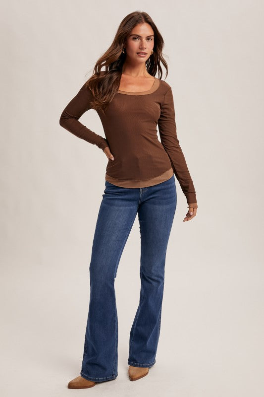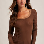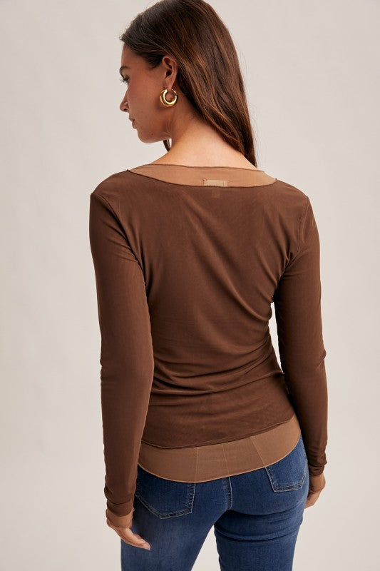 Sleek, versatile, and just the right amount of edge, the Mocha Layers Scoop Neck Mesh Top is your new go-to for layering or wearing solo. Designed with a double-layered mesh body for a flattering fit and a bold scoop neckline, this long-sleeve top is equal parts chic and comfortable. The lightweight stretch fabric hugs in all the right places while keeping it breathable, making it perfect for day-to-night styling.