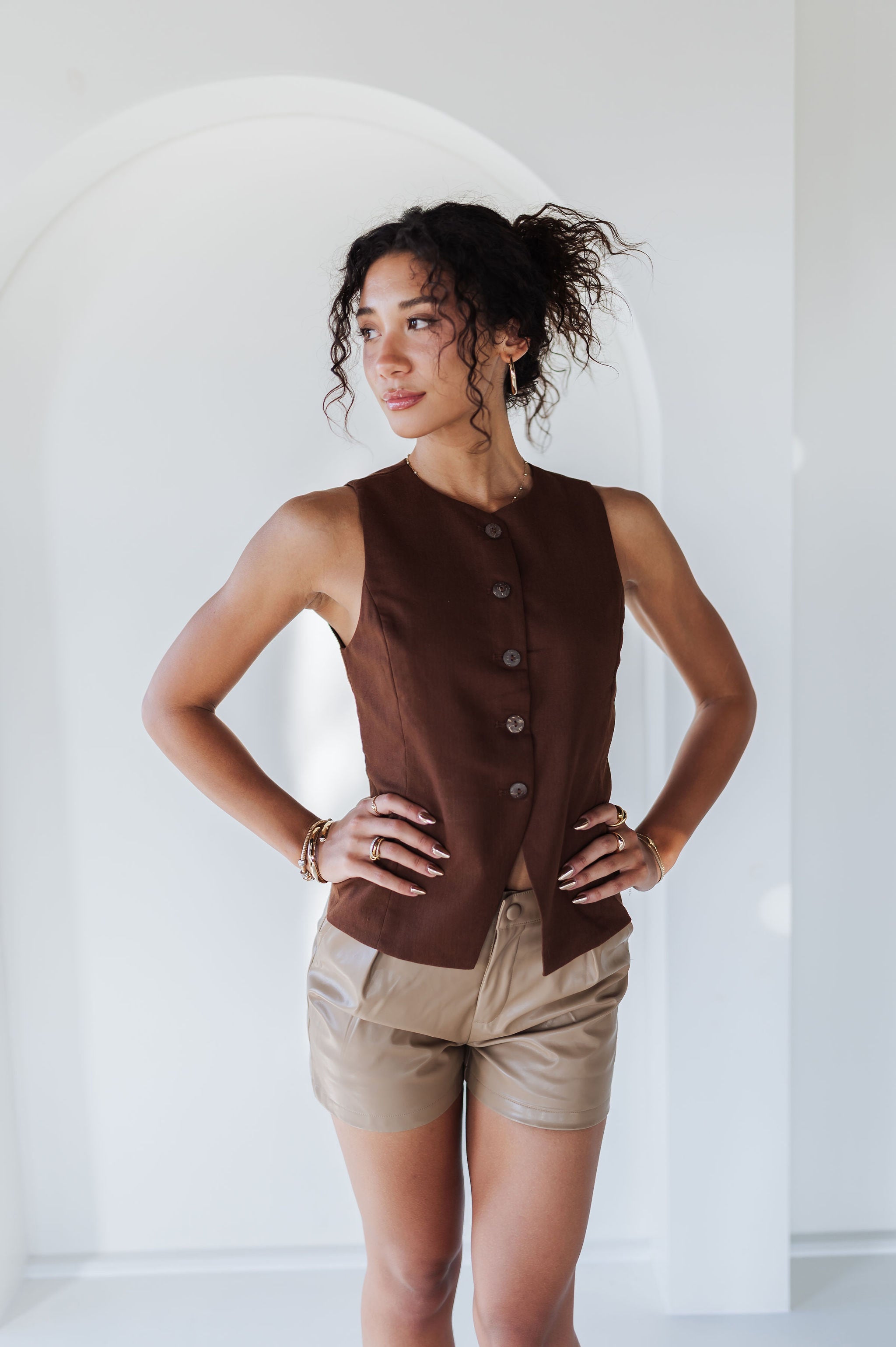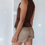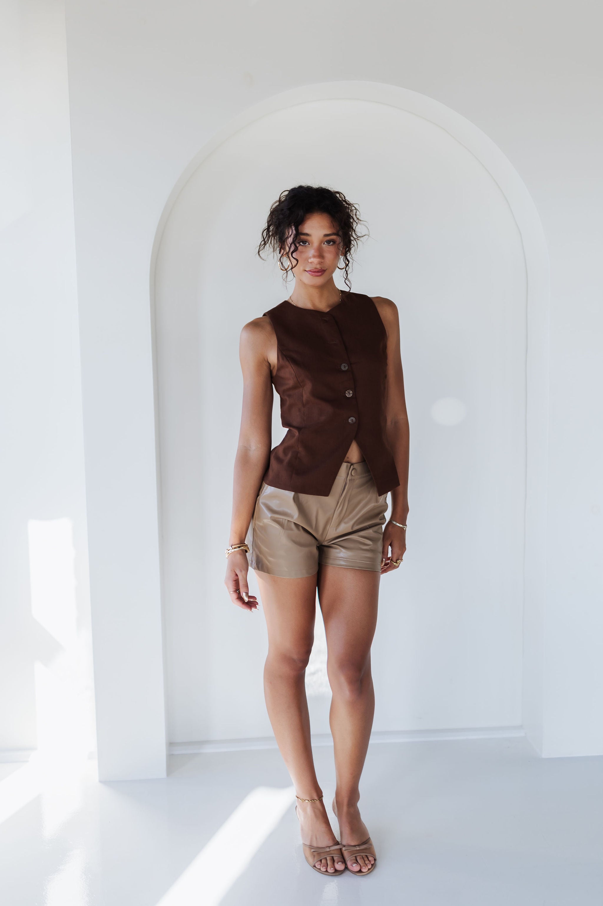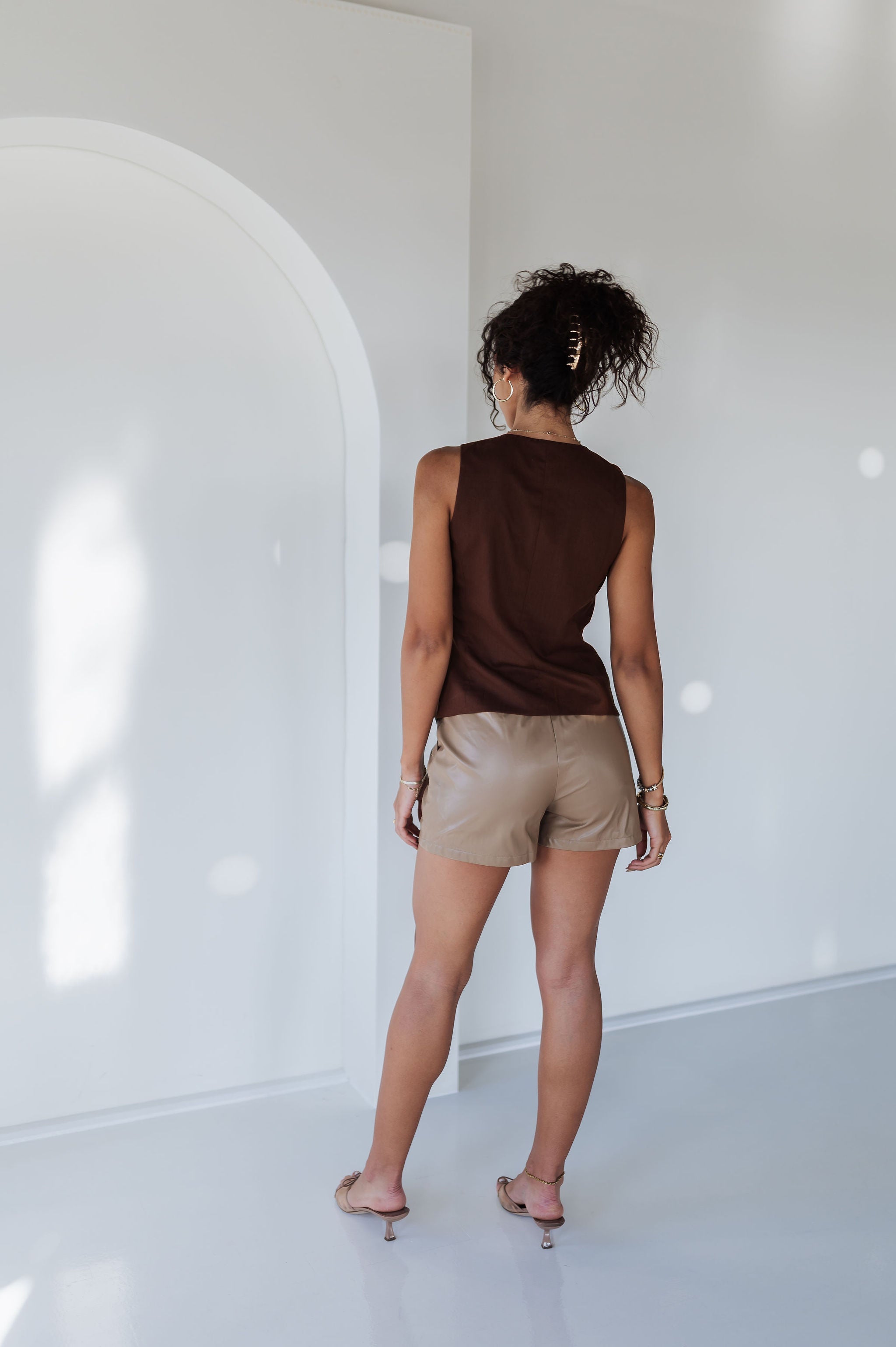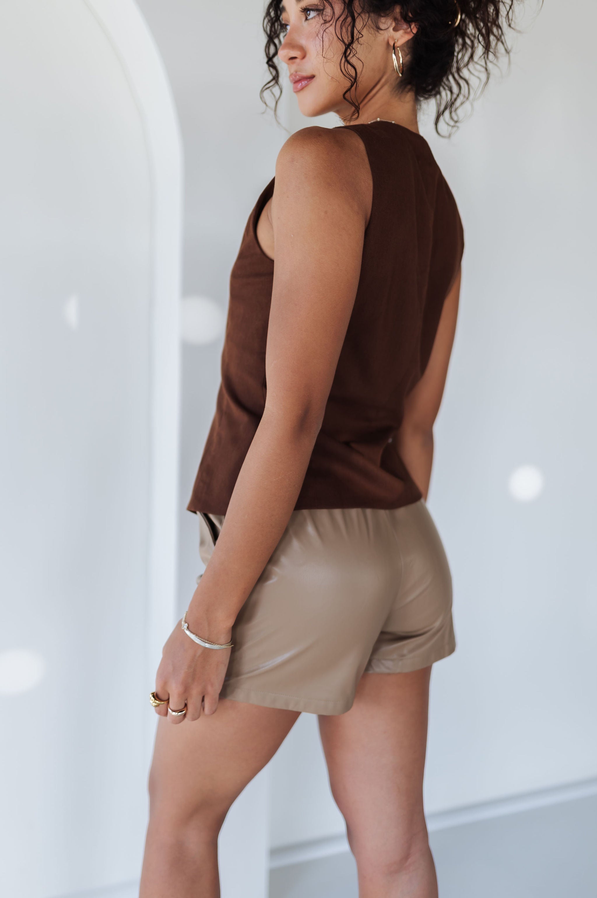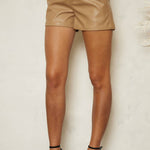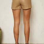 Meet your new wardrobe staple, the Luxe Essential Faux Leather Shorts. Sleek and sophisticated, these high-waisted shorts feature a smooth faux leather finish, tailored front with button closure, and practical side pockets. The elastic back waistband ensures all-day comfort while keeping the fit flattering and polished. Perfect for dressing up or down, these shorts are the definition of chic versatility.