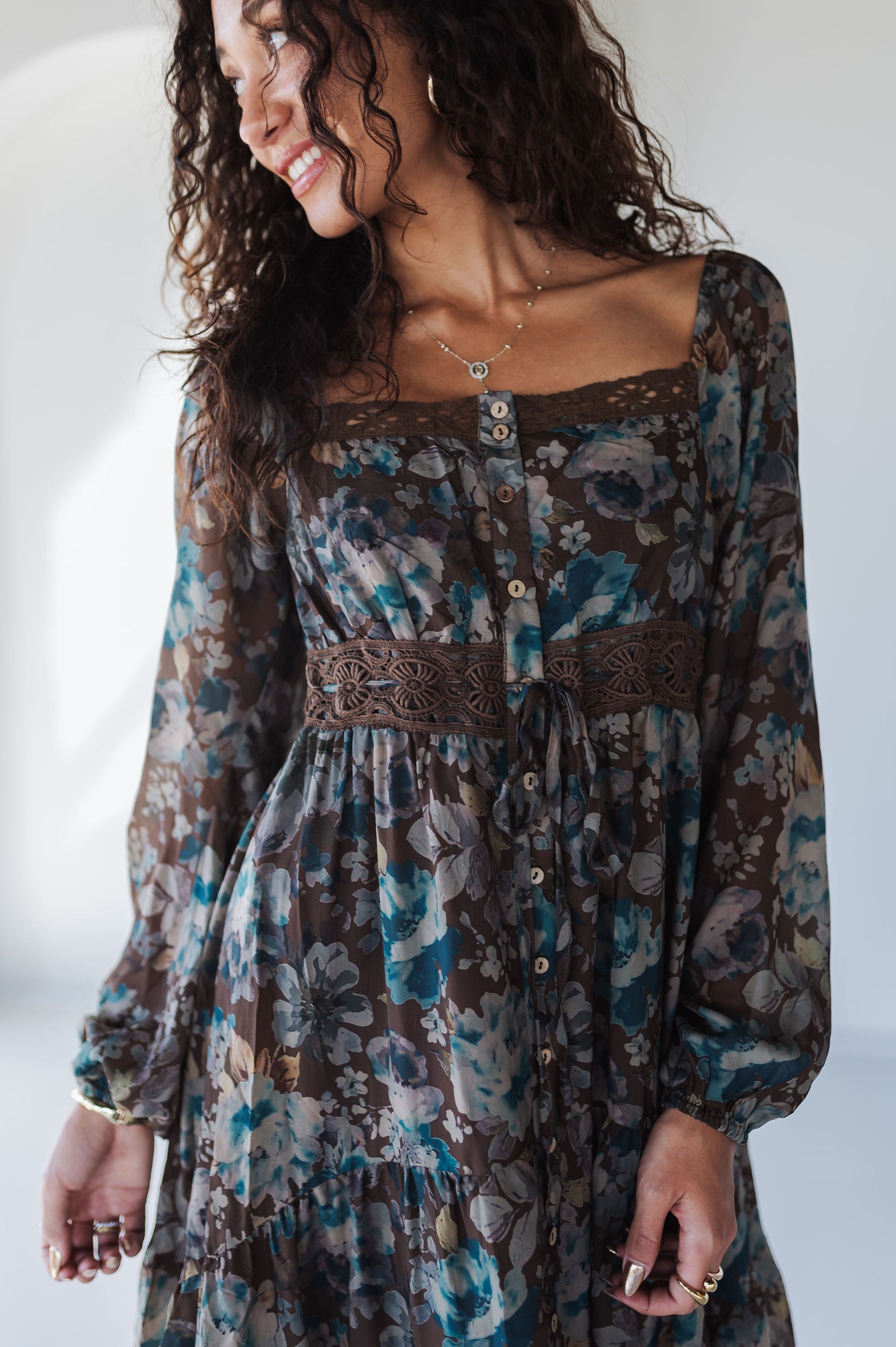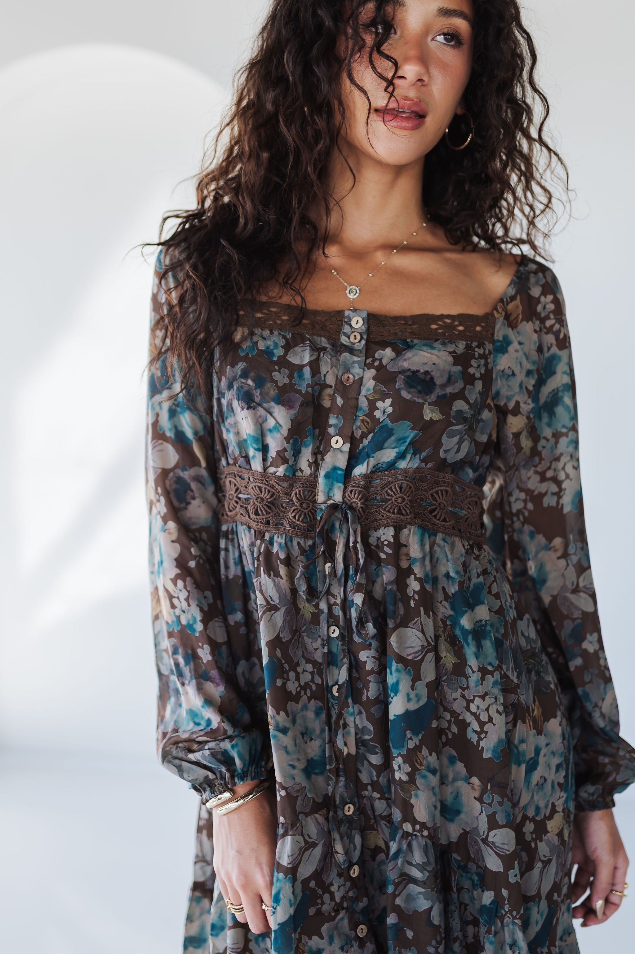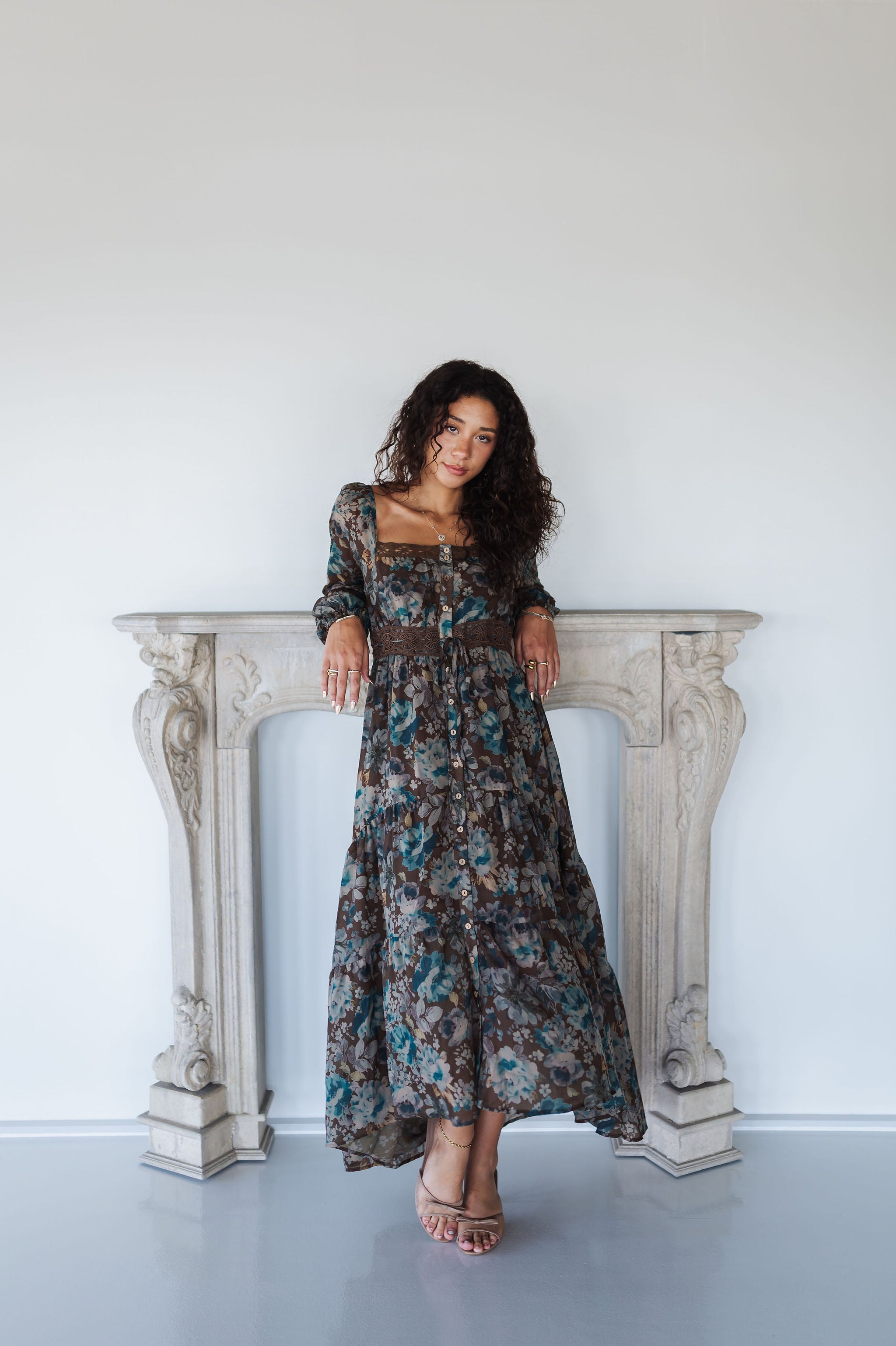 Float into effortless elegance with the Wildflower Ruffle Maxi Dress. This dreamy floral-print dress features a tiered silhouette, soft wrinkle-texture fabric, and delicate lace trim details that give it a romantic edge. Designed with a button-front closure and a flattering high waist with drawstring, it’s the perfect balance of boho charm and timeless femininity.